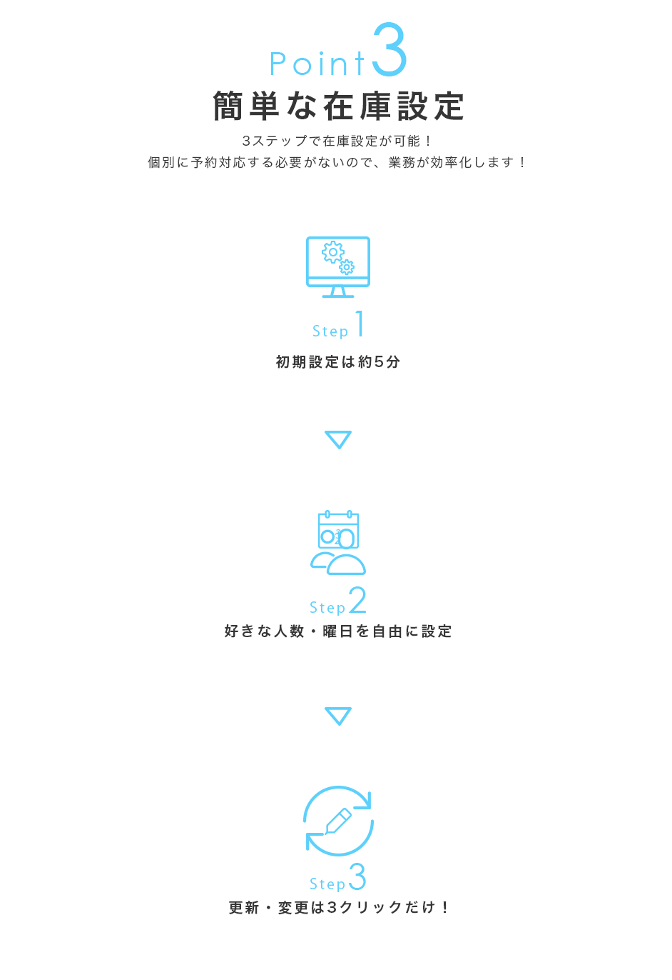 予約を受け入れできる数をカレンダーに設定の上、お客様の予約が自動的に確定する便利なシステムをご利用ください。 面倒なメールのやり取りがなくなるので、業務効率が改善されます。
